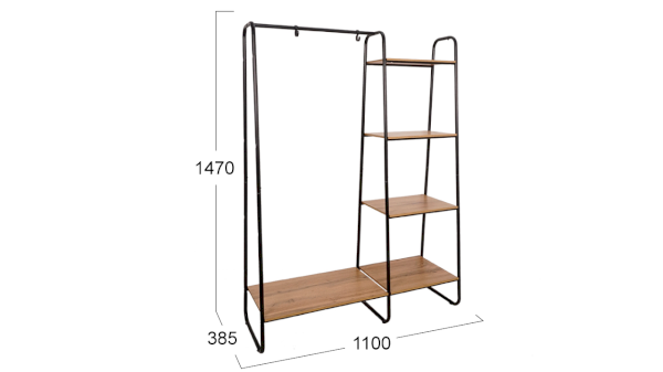 Новинка обладает лаконичным, стильным дизайном и представлена в универсальном черном цвете. Модулю присущи черты минимализма: открытость планировки, максимум простора и воздуха, что делает её идеальным решением для открытого хранения верхней, повседневной одежды и аксессуаров. Наша новинка- это базовое изделие, которое гармонично впишется в скандинавский стиль и направление лофт, а также ее  можно назвать классикой.