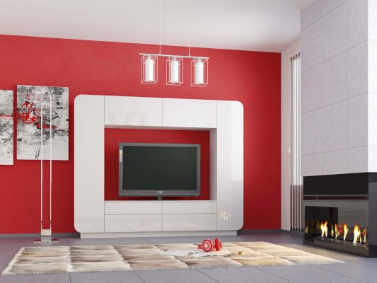 Шкаф многоцелевого назначения для гостиной выполнен в минималистичном стиле. Строгая геометрия в формах, отсутствие лицевой фурнитуры и монохромная гамма обеспечивают визуальную лёгкость модели и интерьеру в целом.