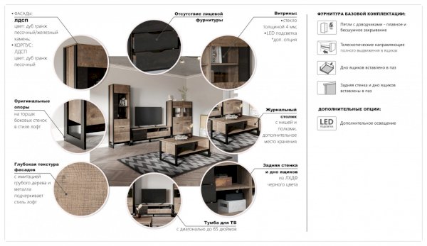 Модульная гостиная Стокгольм Дуб гранж песочный/Железный камень (Империал) - за 44 840 руб. в Луховицах. Купите на сайте luhovicy.onlinemarketmebeli.ru или по телефону 8(800)505-30-63 уже сегодня! Уточнить наличие, комплектацию, актуальную цену можно бесплатно у менеджера ежедневно. Закажите Модульная гостиная Стокгольм Дуб гранж песочный/Железный камень (Империал) до конца акции! Доступна покупка в кредит, рассрочку. Доставим со склада или на заказ.