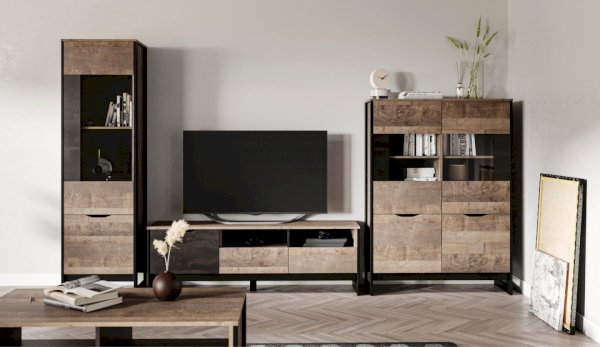 Модульная гостиная Стокгольм Дуб гранж песочный/Железный камень (Империал)