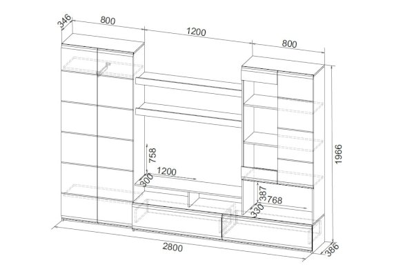 Размер ниши под ТВ: 120 х 75 см