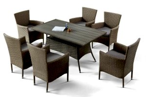 В составе комплекта: стол и 6 кресел. Первоклассная лоза из синтетического ротанга бежевого цвета стойкая к любым погодным проявлениям. Крепкий каркас из стали с полимерным антивандальным покрытием и отличным качеством сварки. Изделие сплетено вручную нашими мастерами под жестким контролем качества на каждом этапе производства. Лоза максимально приближена по рельефу и текстуре к естественному материалу. Подходит для использования на улице и внутри помещения в любую погоду. Не боится влаги, прямых солнечных лучей и холода.