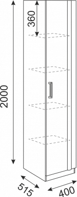 • Пенал имеет 4 полки: 3 съемных + одна жесткая (вторая снизу).