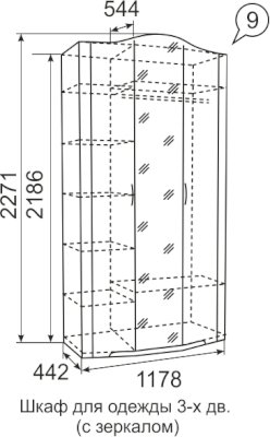 Трехдверный шкаф для одежды Виктория 9 (Ижмебель)