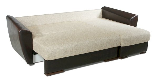 Расцветка: "Марал" кожзам – Cometa White / «Арбен» Рогожка – Саванна хазел Угловой диван Комфорт-евро компакт 3 категория ткани