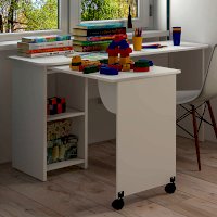Очень практичная модель стола ПС-03 подойдет как для детской комнаты, так и для кабинета или офиса. Особенностью стола является раздвижная столешница, которая создает дополнительную рабочую поверхность. В двух открытых нишах можно хранить необходимые предметы или канцелярию. Белый цвет изделия позволит ему расположиться в любом интерьере.