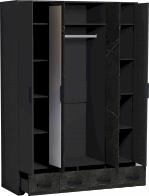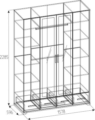 Четырехдверный шкаф для одежды и белья Айрис 555 с зеркалами и выдвижными ящиками - настоящая находка для большой и маленькой квартиры. Шкаф оснащен отделениями для хранения белья с полками на скрытых полкодержателях и отделением для одежды со стационарной штангой длиной 749 мм. Штанга выдерживает нагрузку до 40 кг. 4 выдвижных ящика комплектуются шариковыми направляющими. Такой шкаф с ящиками сможет заменить полноценный комод в маленькой спальне. Петли с доводчиками для бесшумного закрывания дверок шкафа.