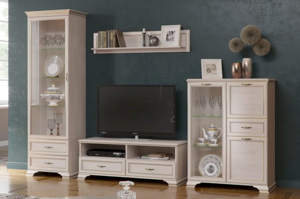 Настенная полка - это неизменный и важный атрибут гостиной спальни или детской комнаты. В модульной коллекции "Cиена" вы найдёте широкий выбор различных полок и сможете подобрать нужную именно вам модель. Представленный вам модуль универсален и подходит ко многим изделиям из коллекции. Декоративная отделка в виде фигурного профиля с золотой патиной подчеркивает классический стиль, а ЛДСП светлого оттенка «Бодега белый» с древесной текстурой подарит тепло и уют интерьеру спальни или гостиной.