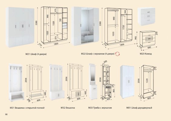 Шкаф четырехстворчатый М21