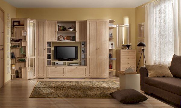 Используйте углы в комнате рационально! Угловой шкаф оснащен стационарной штангой длиной 81 см, полочками для белья и автоматической подсветкой, которая включается, если шкаф открыт. Фасад углового шкафа изготавливается только в исполнении «левый» (определяется по расположению петель). По своим габаритам угловой шкаф подходит для компоновок глубиной 590 мм.