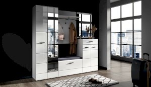 Компактный шкаф Йорк – это решение для небольшой спальни, гостиной или прихожей. Он выполнен в современном стиле – сочетает в себе функциональность и эффектный внешний вид: горизонтальная фрезеровка фасадов, контрастные черного цвета ручки и задняя стенка из ХДФ. Глянцевые белые фасады High Gloss из МДФ и зеркало в полный рост наполняют помещение светом, делают его воздушнее. Внутри предусмотрены секции для белья и отделение со штангой. Идеально компонуется со всеми модулями системы Йорк.