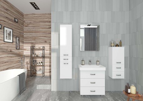 Тумба под раковину AQUATON Америна 60 отличается лаконичным современным дизайном. Стильная подвесная модель с двумя ящиками имеет ширину 60 см и выполнена в белоснежном глянцевом цвете. Корпус изготовлен из влагостойкой ЛДСП, а фасад из высококачественной МДФ. Широкий и вместительный нижний ящик предназначен для крупных предметов, а в верхнем имеется специальная организация пространства, позволяющая хранить мелкие вещи. Ящики снабжены доводчиками и системой бесшумного и плавного закрывания. Корпус и фасады покрыты полиэфирной краской ультрафиолетового отверждения, обеспечивающей дополнительную защиту от влаги.