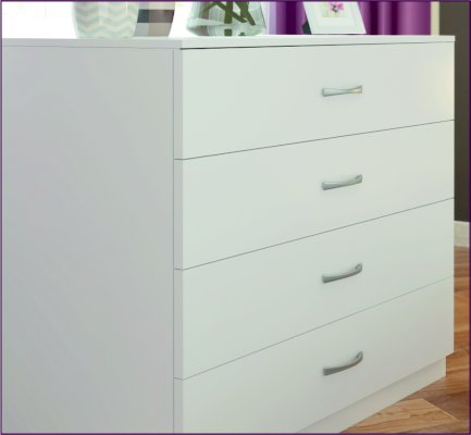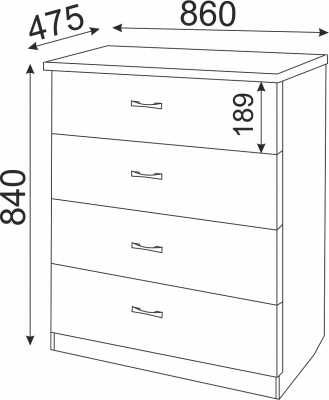 • Комод имеет 4 выдвижных ящика без разделителей.