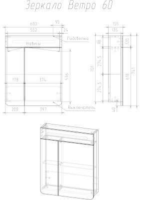Зеркало-шкаф Vetro 60 (Veneciana) - за 28 199 руб. в Луховицах. Купите на сайте luhovicy.onlinemarketmebeli.ru или по телефону 8(800)505-30-63 уже сегодня! Уточнить наличие, комплектацию, актуальную цену можно бесплатно у менеджера ежедневно. Закажите Зеркало-шкаф Vetro 60 (Veneciana) до конца акции! Доступна покупка в кредит, рассрочку. Доставим со склада или на заказ.