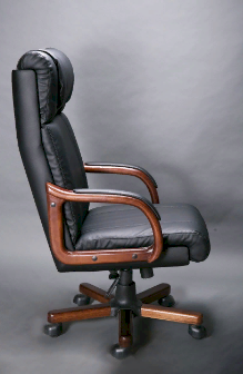 Кресло с высокой спинкой, с подлокотниками прямоугольной замкнутой формы с мягкими накладками обитыми в цвет кресла.