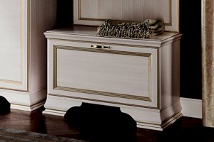 Теплый оттенок ЛДСП «бодега белый» сочетается практически с любым цветом стен и наполнит дом атмосферой уюта и комфорта. Классический стиль изделия подчеркивают декоративные профили и опоры, а также золотая патина и изысканная лицевая фурнитура.