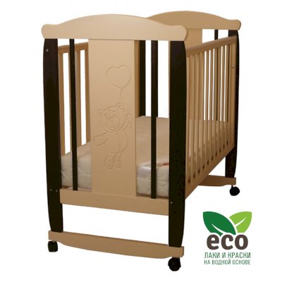 Кроватка "Соня 02" имеет механизм качания колесо-качалка. Колеса оснащены стопорами.