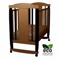 Кроватка декорирована фрезерным рисунком "Мишка". Уникальные фрезерные рисунки размером от 50 см на обеих спинках.