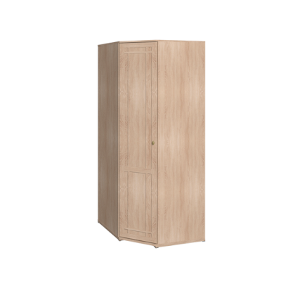 Используйте углы в комнате рационально! Угловой шкаф оснащен стационарной штангой длиной 81 см, полочками для белья и автоматической подсветкой, которая включается, если шкаф открыт. Фасад углового шкафа изготавливается только в исполнении «левый» (определяется по расположению петель). По своим габаритам угловой шкаф подходит для компоновок глубиной 590 мм.