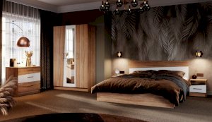 Спальня Антария – это дух творчества и самобытного стиля. Нестандартные фасады ЛДСП с асимметричными скошенными линиями вносят свободу и движение в жилое пространство, делают интерьер более сложным и необычным, придают характер и индивидуальность. Декор фасадов повторяет цвет и рисунок натурального дерева. Оптимальный набор модулей поможет вам создать яркий и функциональный интерьер, отражающий ваши вкусы и предпочтения.