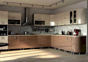 Модульный кухонный гарнитур Хайтек мокко глянец (Террикон)