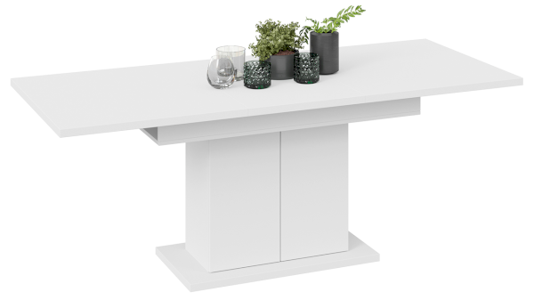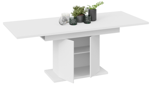 Стол «Детройт» Тип 1 имеет надежный ручной синхронный механизм раздвижения со вставкой, которая укладывается вручную. Это выручает в моменты прихода гостей, которых хочется разместить свободно и с комфортом. Наша новинка удивит Вас своей практичностью. Конструкция опоры этой модели предусматривает наличие ниши с полкой для хранения необходимых предметов за дверцами, открывающимися легким нажатием руки.