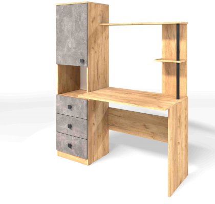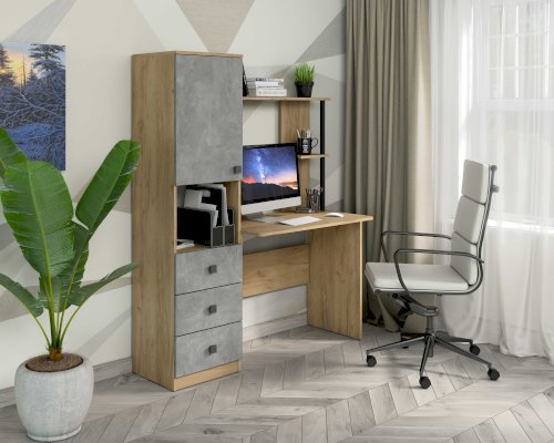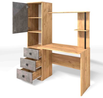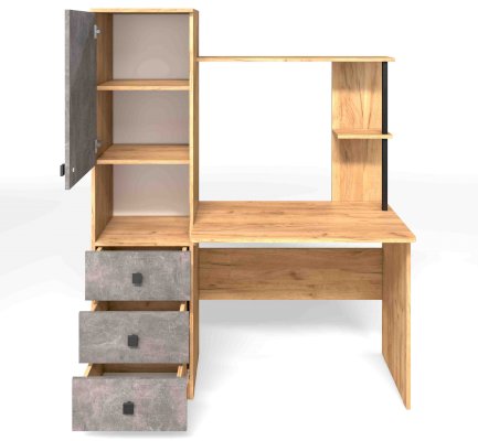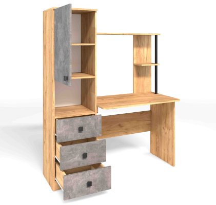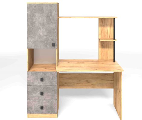 Солидный и вместительный письменный компьютерный стол с закрытыми полками и тремя ящиками отлично подойдет для работы или учебы. В нишу удобно установить дополнительное оборудование - сканер или принтер. Открытые полки удобны для размещения мелочей.
