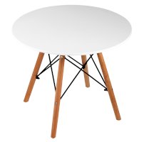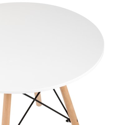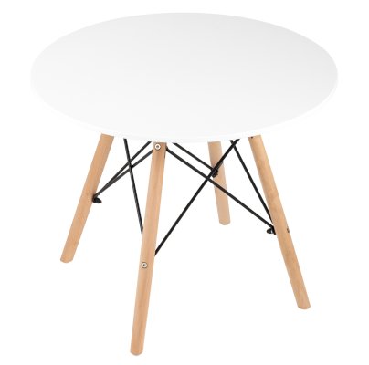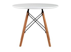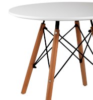 Детский дизайнерский стол очень компактный и неприхотлив в эксплуатации. Деревянные ножки соединены красивой металлической конструкцией, которая смотрится эффектно и добавляет модели надежности. Белая столешница изготовлена из качественного МДФ. Оптимально для детей дошкольного возраста.