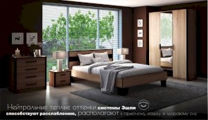 Спальня Эшли – это воплощение современного европейского стиля, в дизайне которой каждый модуль имеет своё практичное назначение. Благодаря сочетанию цветов светлого дуба с контрастными планками, Вы сможете создать яркий и функциональный интерьер, отражающий ваши вкусы и предпочтения. Спальня – это сердце дома, так как она часто служит сразу для отдыха, гардероба и работы. Система Эшли состоит из 15 модулей, которые позволяют выбрать все нужные элементы мебели в едином стиле. Кроме этого, мебель в спальне напрямую влияет на качество сна и наше здоровье, поэтому всё должно быть максимально безопасным и экологичным. При создании системы Эшли реализованы в полной мере «зеленые» принципы. Система выполнена из высококачественных материалов.