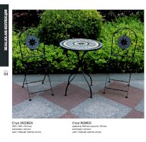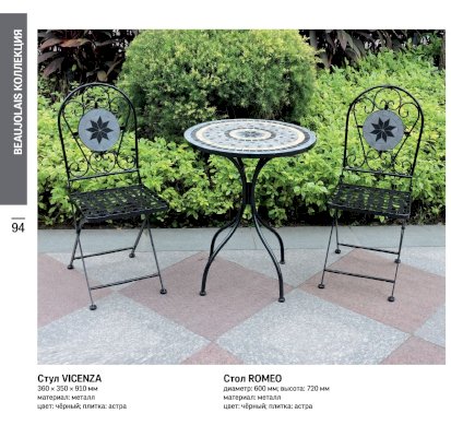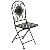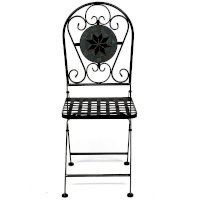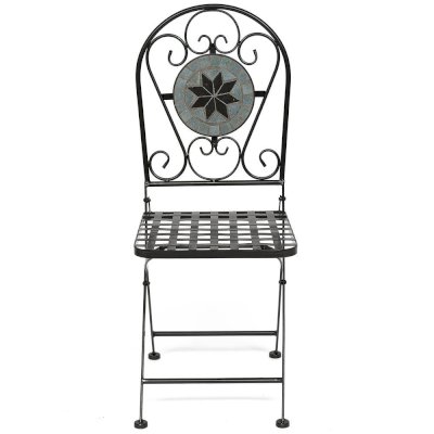Изящная форма и изысканный дизайн компактного складного стула Secret De Maison VICENZA из коллекции BEAUJOLAIS не только выгодно выделяют его в интерьере, но и помогут создать гармоничное пространство на загородной веранде, городском балконе или приусадебном участке. Спинка, украшенная оригинальным винтажным орнаментом из мозаики и коваными узорами ручной работы, прочный каркас, изготовленный из стального сплава с напылением краски, выглядят дорого, элегантно, добавят ноты изысканности и индивидуальности в ваш интерьер. Стул легко складывается и раскладывается, не занимает много места при хранении. Модель практична, надежна, способна выдерживать большие нагрузки, устойчива к воздействию влаги, температурным перепадам и проста в уходе. Стул VICENZA прекрасно сочетается со столом Secret de Maison ROMEO и с мебелью из коллекции BEAUJOLAIS, поставляется в собранном виде.