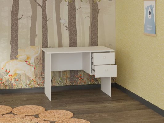 Письменный стол имеет просторную столешницу и два выдвижных ящика полного выдвижения. Оптимальный вариант для оформления удобного рабочего пространства.