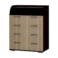 Ширина комода – 800 мм и для облегчения открывания нижние выдвижные ящики оснащены одновременно двумя ручками геометрической формы. Верхний – разделен на две секции для более удобного хранения. Сочетание в модели Стандарт №1 корпуса цвета венге и фасадов в светлом оттенке лоредо позволит комоду украсить любой интерьер.