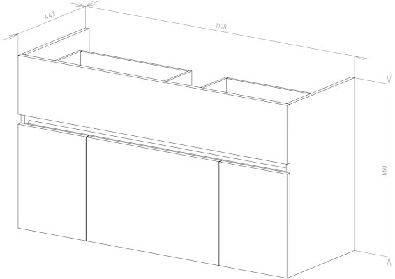 • 2 выдвижных ящика со встроенным доводчиком плавного закрывания, скрытого монтажа;
