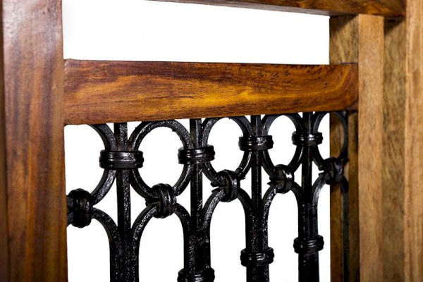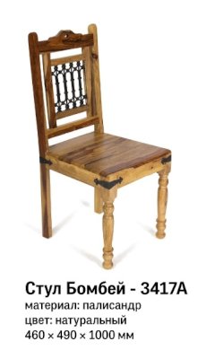 Легкий и элегантный дизайн, простые линии и естественные цвета стула из коллекции BOMBAY легко дополнят другую мебель и позволят создать гармоничное пространство, в которое хочется вернуться еще не раз. Стул удачно сочетает в себе удобство и лаконичность. Винтажная форма и фурнитура из черного металла создают неповторимый облик изделия. Высокая спинка с оригинальным кованым декором и удобное сиденье из массива палисандра позволяют комфортно сидеть в течение длительного времени. Широко поставленные прочные ножки, делают модель крепкой и основательной. Натуральная древесина палисандра, обработанная прозрачным лаком, - прочный, устойчивый к повреждениям, твердый материал. Эта элегантная и комфортная модель станет любимым местом отдыха в вашем доме. Стул отлично гармонирует с мебелью из коллекции BOMBAY, поставляется в собранном виде.
