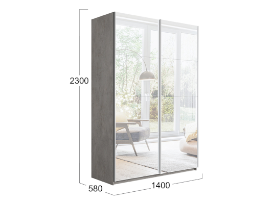 Двухдверный шкаф-купе с 2 зеркалами Траст 1400 (Трия)