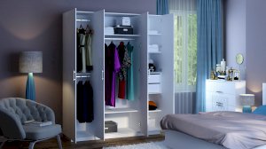 • В средней секции вешало для длинных вещей на вешалках и две жесткие полки.