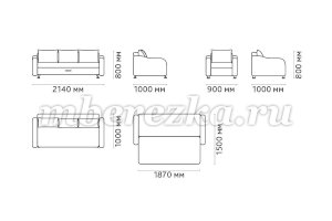 Размер дивана : 2140*1000*800 мм