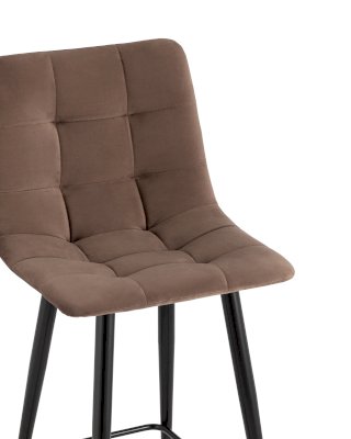 Лаконичный полубарный стул с обивкой из велюра без подлокотников. Плавная форма сиденья и спинки обеспечивают комфортную посадку. Красивая строчка на внутренней стороне велюровой обивки, эргономичная спинка, аккуратное исполнение и качественные материалы. Ножки выполнены из металла.