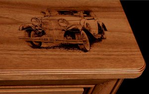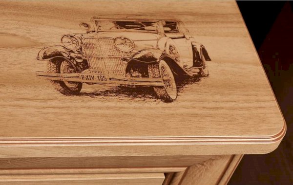 • Рисунки ретро-автомобилей на фасадах и столешницах в технике «шелкография» стилизованы под ретро-печать.