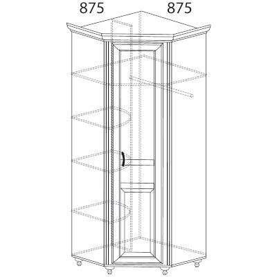 • Размер:(ШхВхГ, мм): 580х2140х425 (618х2190х475) (угол 875х875)