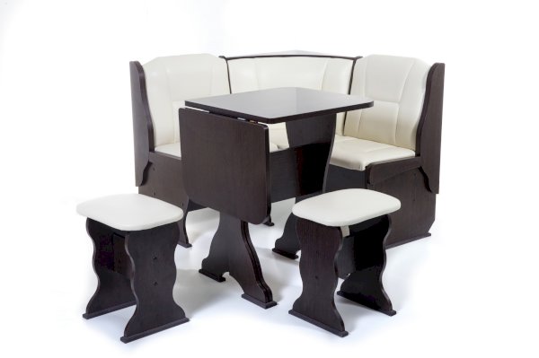 Нарцисс - это отличный пример кухонного уголка для малогабаритной кухни без потери комфорта и солидности. Обе скамьи малого размера, но очень удобные, с высокой спинкой и выглядит такой угловой диван очень солидно, не смотря на свои скромные размеры.