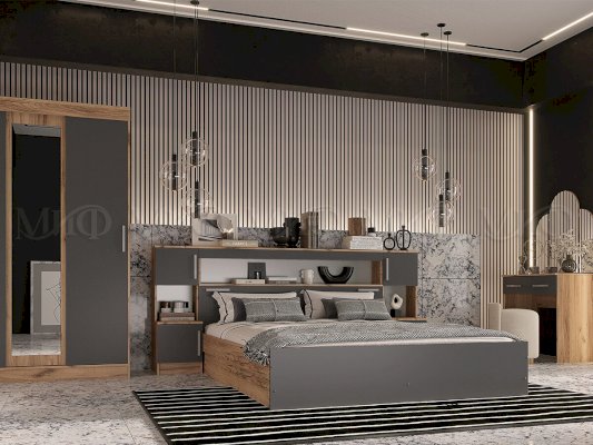 Модульная спальня Бася Графит/Дуб крафт (Миф)