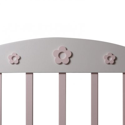 Кроватка декорирована цветочками.