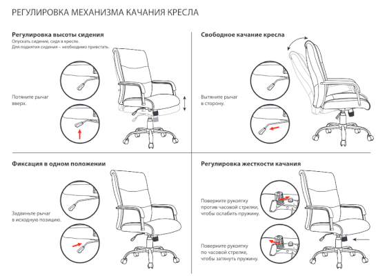 Тип механизма кресла: "топ-ган" качание с регулировкой под вес и фиксацией в 1 положении