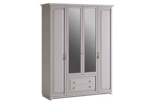 Нет ничего лучше, чем сочетание красоты и практичности. 4-створчатый шкаф «Белла» тому доказательство. Фасады шкафа выполнены в нежном оттенке джелато, дверцы украшены фрезеровкой, а ручки – декоративными кистями. Центральный отсек шкафа оснащен круглой штангой для одежды, а боковые – полками. Выдвижные ящики прекрасно подойдут для хранения вещей.