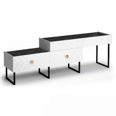 Представляем вашему вниманию ТВ-тумбу «Марсель». Модуль имеет необычную и очень привлекательную конструкцию, составные части расположены в виде ступенчатой композиции. На каждом уровне присутствует два выдвижных ящика.