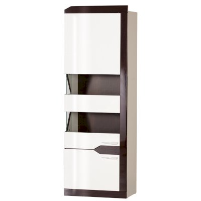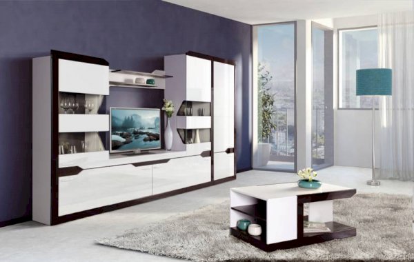 Гостиная «Ронда» – модульная мебель в современном стиле, выполненная в виде горки. Благодаря сочетанию 2-х контрастных декоров – белого и венге с глянцевыми и матовыми поверхностями, а также оригинальному дизайну двухсторонних стеклянных витрин и декоративному приему стыковки модулей, «Ронда» выглядит эффектно и стильно. Завершают внешний облик белые глянцевые ручки итальянского производства. Модель включает 6 самых востребованных модулей для гостиной комнаты: шкаф для одежды с возможностью добавления 2-х дополнительных полок, 2 шкафа многоцелевых с витринами для посуды, тумбу, полку навесную и стол журнальный. Мебель оснащена петлями с доводчиком, благодаря которым двери закрываются плавно и бесшумно, так что, можно не волноваться за стеклянные фасады. Цвет «белый/венге»
