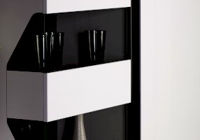• Глянцевые ручки в цвет фасадов, декоративные торцевые накладки и дизайнерский прием стыковки модулей делают модель оригинальной и стильной