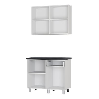 Кухонный гарнитур Ева шириной 1 м - лаконичное оригинальное решение для вашей кухни! Гарнитур состоит из модулей: верх 10В1 (ширина 1000 мм, высота 720 мм, глубина 310 мм), низ 10Р2 (ширина 1000 мм, высота 820 мм, глубина 500 мм. Высота нижнего модуля указаны с опорой.