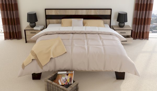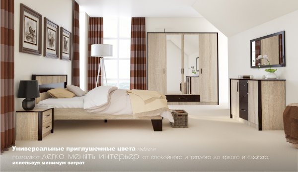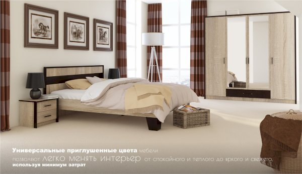 Кровать Эшли - выполнена в стиле минимализм: предельная лаконичность и простота, строгие геометрические очертания. Изголовье выполнено из ЛДСП с декоративной вставкой темного цвета, по периметру - контрастный профиль из МДФ. Сочетание темных ножек трапецевидной формы и кромки изножья цвета венге со светлым корпусом кровати придает кровати легкость и выразительность.